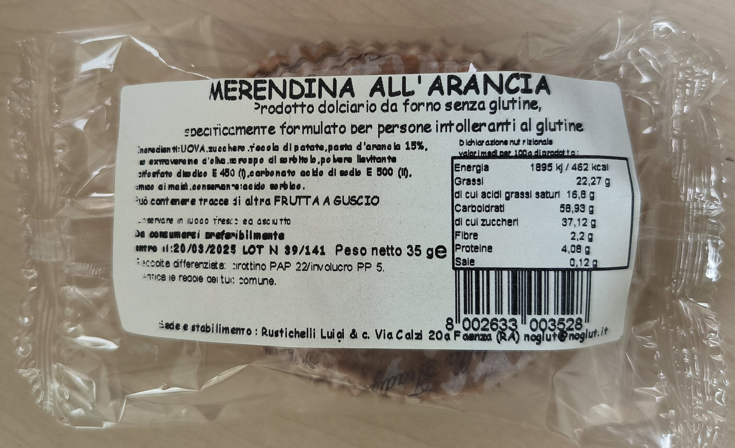 Rustichelli Luigi - Merendina all'arancia senza glutine - 35g